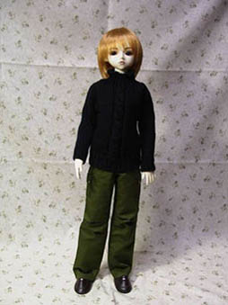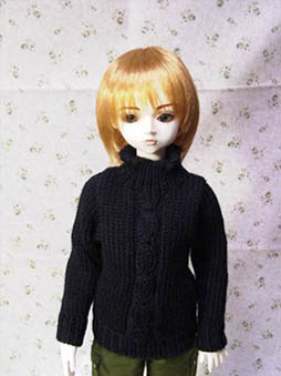| 黒い手編みのセーター。 スゴク柔らかくて、 Wig を外せばそのまま着せる事が出来ます。 13少年用でしたがジョナサンでも似合います。 真ん中の縄編みがオシャレです。 他の色も欲しかったな〜。 |